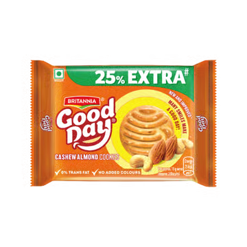 Britannia Good Day Cashew cookies are crunchy, melt in mouth cookies with a delicious, nutty taste. Best enjoyed with a tea, every cookie is a reason to smile. Try it today and Make everyday moments even more special with this tasty treat.