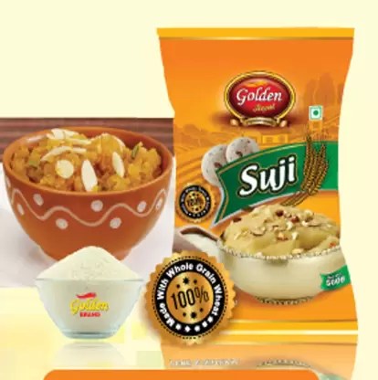 Golden Sooji/Suji is made from the best-quality wheat to give you a wholesome and hygienically-packed product. It contains vitamins and minerals that are necessary for our well-being. Use it to make upma, puris, kesri bath, phirni and rava dosa. Provides fibre content to the body. Proteins and carbohydrates in the sooji provide you with energy throughout the day and strengthen the body.